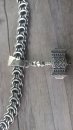 Полновесная цепочка. Очень популярное среди мужчин плетение «Рамзес», также на просторах интернета данное плетение можно увидеть под названием «Двойной обратный бисмарк». В особенности мужское внимание привлекают толстые серебряные цепочки из «Двойного обратного бисмарка» с размерами близкими к размерам на фото. И тем не менее, если такая цепочка лично для Вас смотрится на шее весьма громоздкой или наоборот маловатой, то Вы без особого труда можете откорректировать практически любой её параметр под свои вкусы, в том числе есть возможность выбрать как с чернением, так и нечернёную или же с родированием.