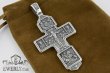 Изображено на кресте: Распятие Христово с предстоящими. Святая Троица. Архангел Михаил. Святые Воины. Тихвинская икона Божией Матери. Большой православный крест с чернением и позолотой.Высота: 8 мм