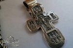 Изображено на кресте: Распятие Христово. Святая Троица. Святой Николай Чудотворец. Мученик Трифон. Три святителя. Икона Божией Матери "Толгская". Ангел Хранитель. Преподобный Сергий Радонежский. Святой Спиридон Тримифунский.1. Размер: 7 х 4 мм